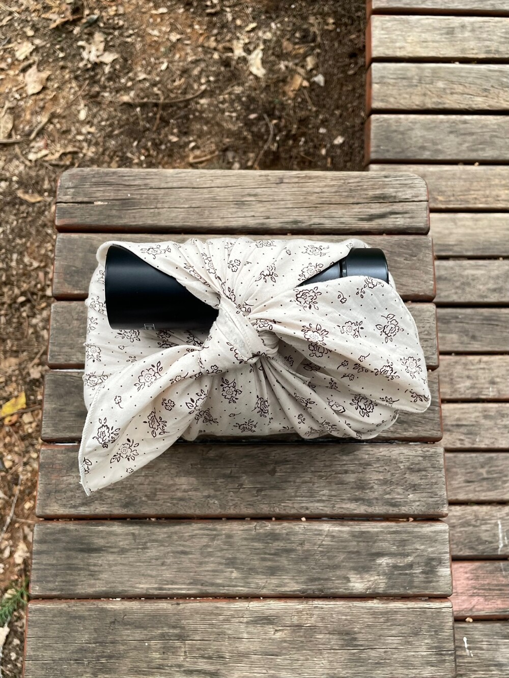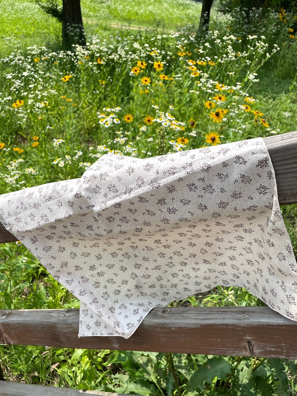 잔잔한 꽃과 점들이 놓여진 반다나입니다.