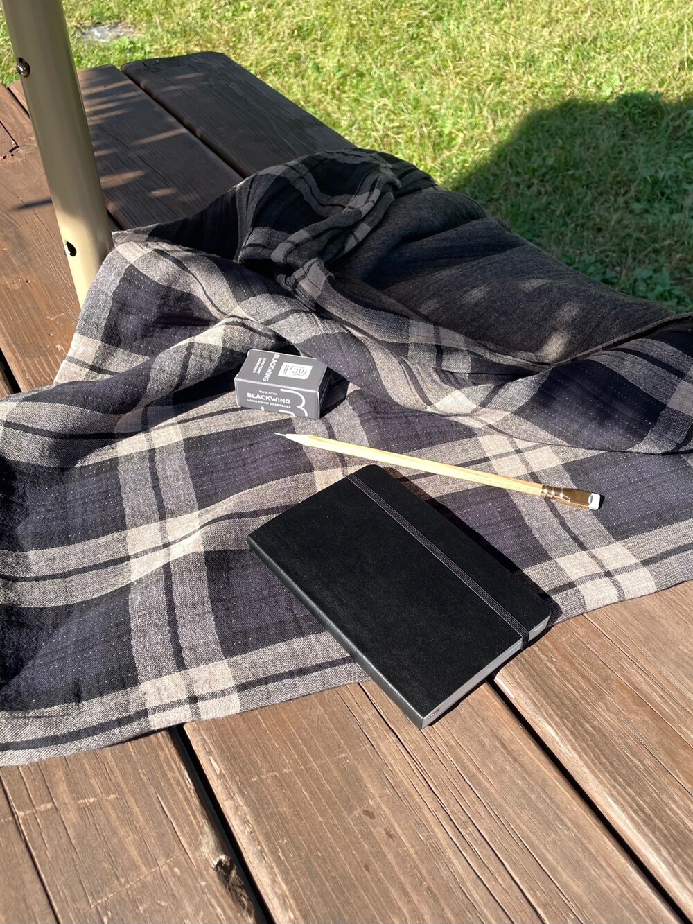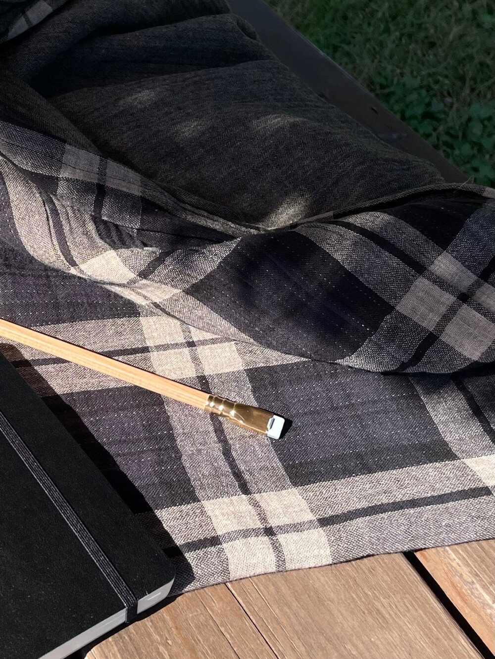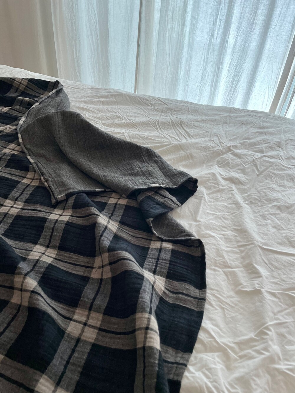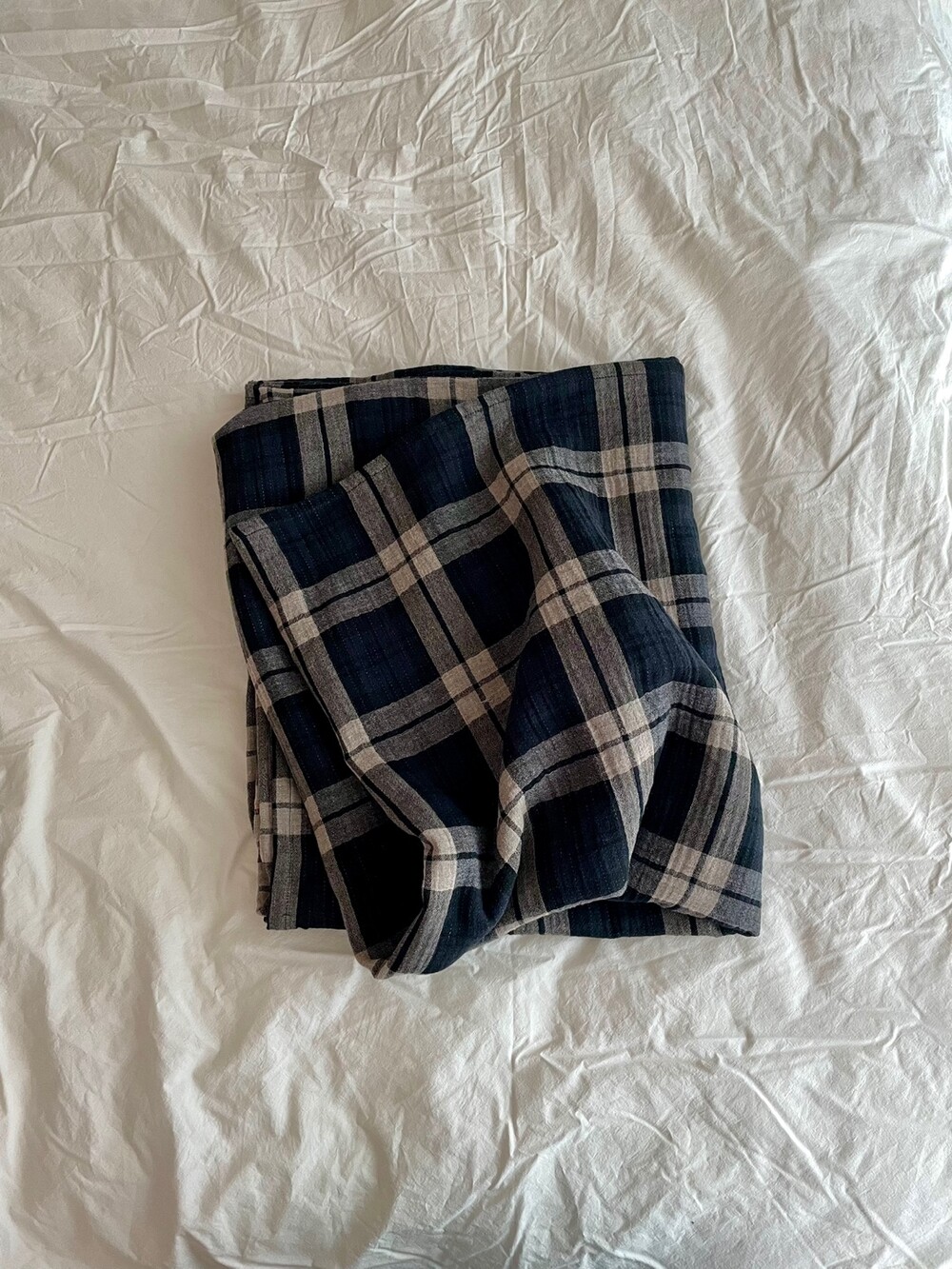 체크 패턴에 소소한 스티치 디테일이 참 마음 가는 면 소재 블랭킷입니다.