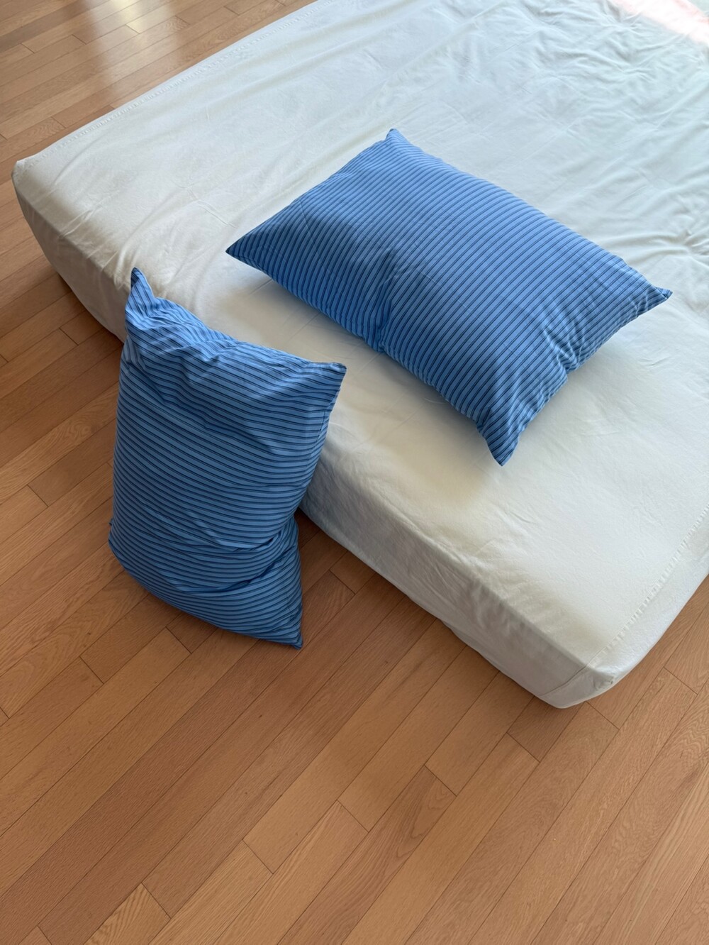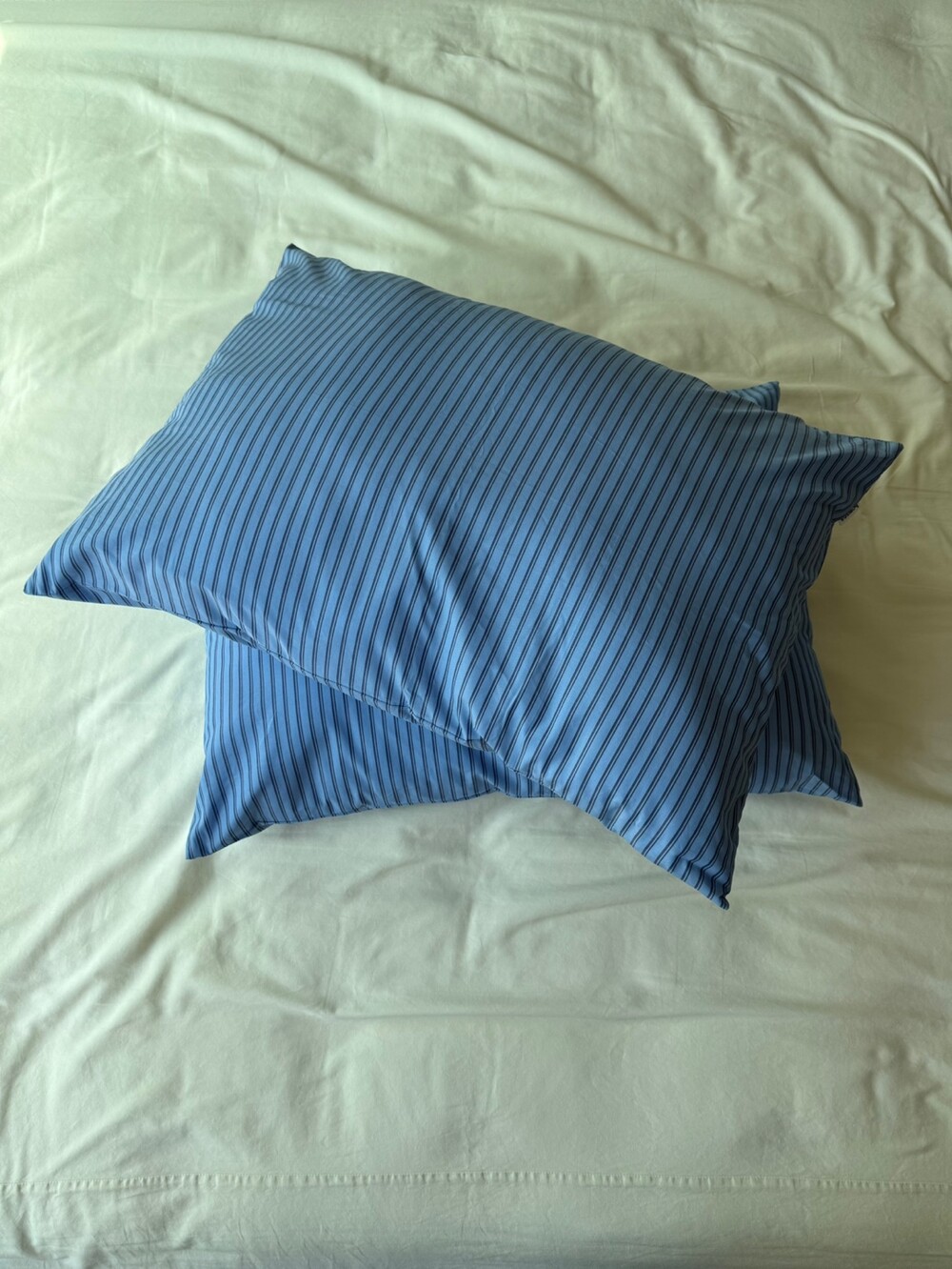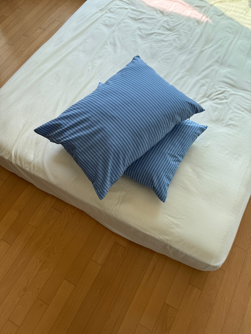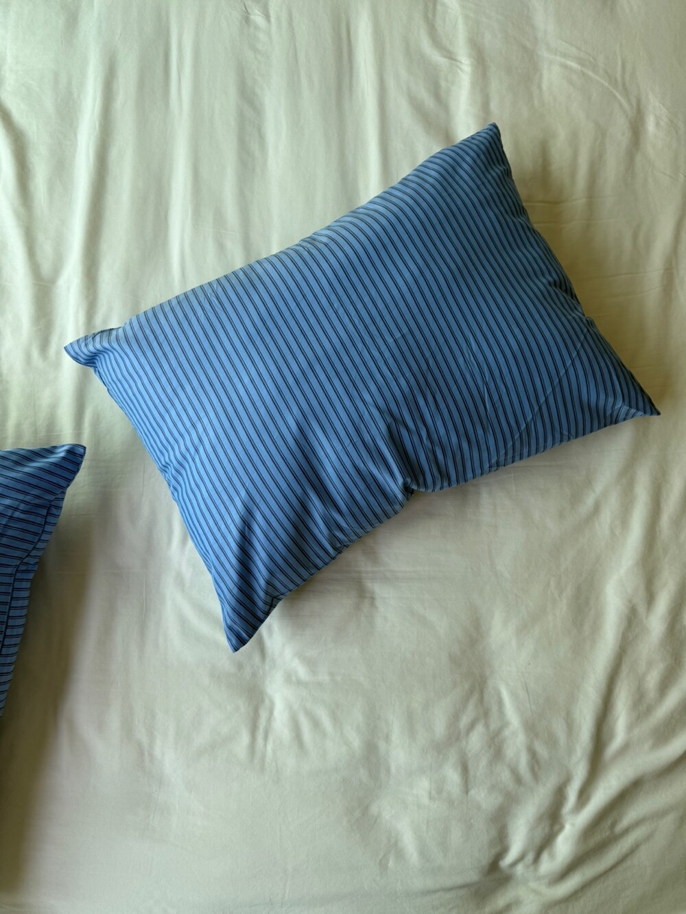 경쾌한 블루 컬러 스트라이프로 우리의 공간을 밝혀 줄 배게커버입니다.