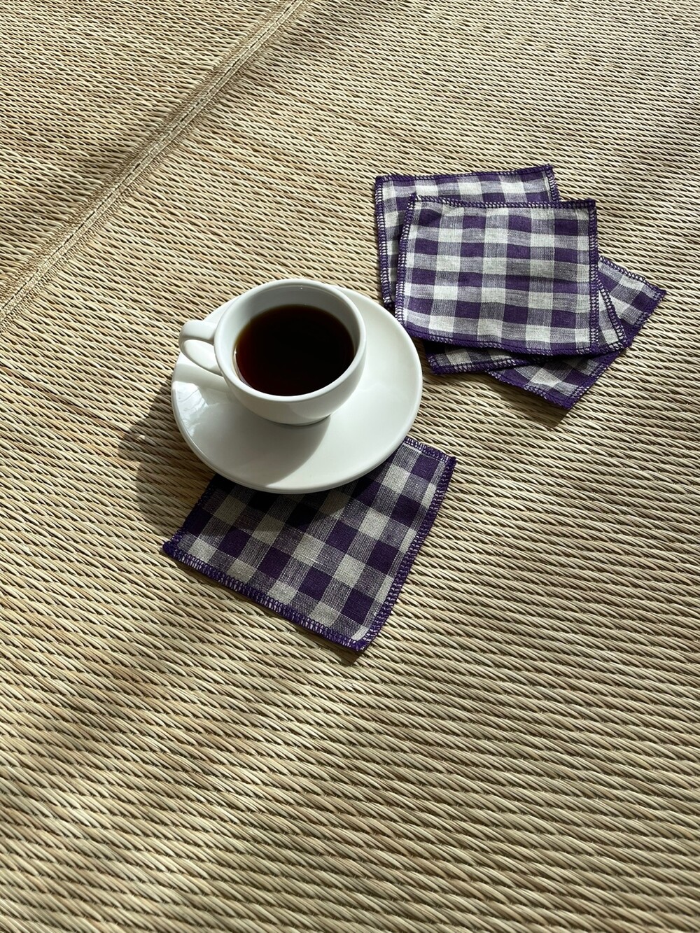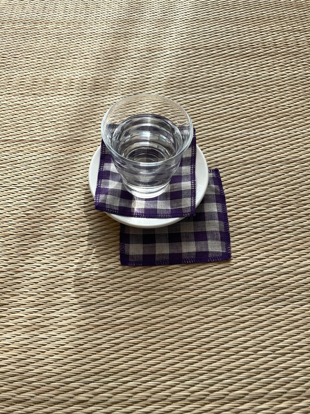 두겹을 오버로크로 마감 처리 한 린넨 소재 티 코스터입니다.
