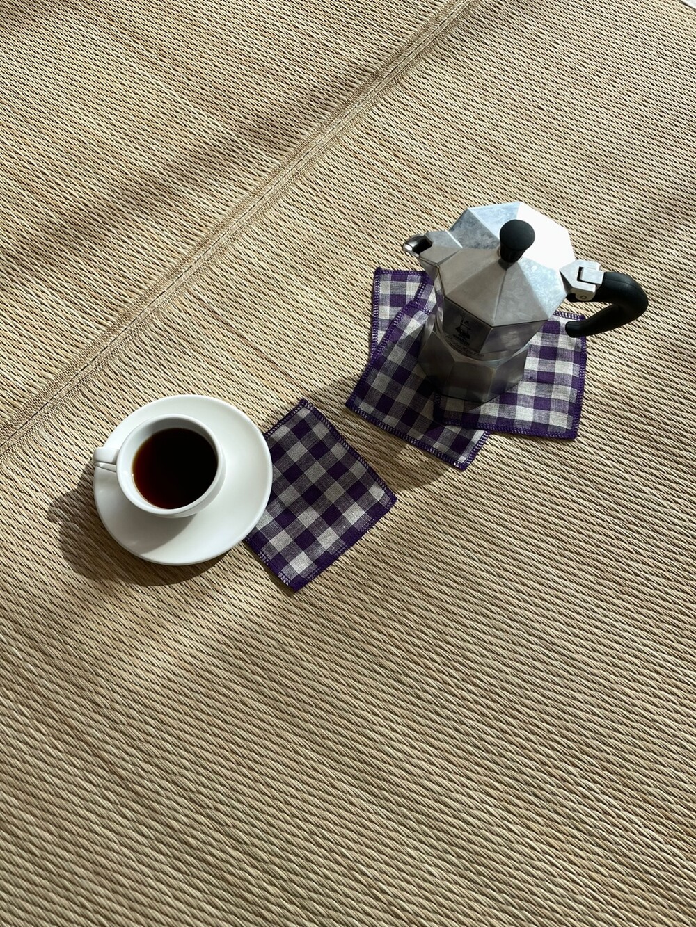 다양한 잔 아래에 포인트 주기 좋은 색감과 패턴이에요.